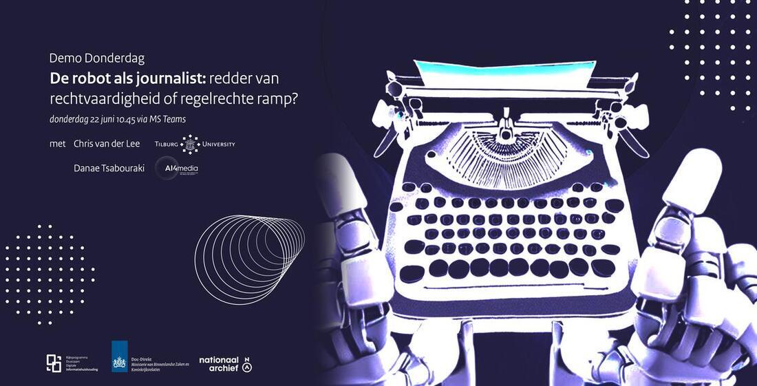Komende Demo Donderdag staan we stil bij de snelle ontwikkeling van robotjournalistiek. We nodigen twee experts uit: Danae Tsabouraki (betrokken onderzoeker bij het Europese project AI4Media) en Chris van der Lee (universitair communicatie- en cognitiewetenschapper aan de Universiteit van Tilburg).